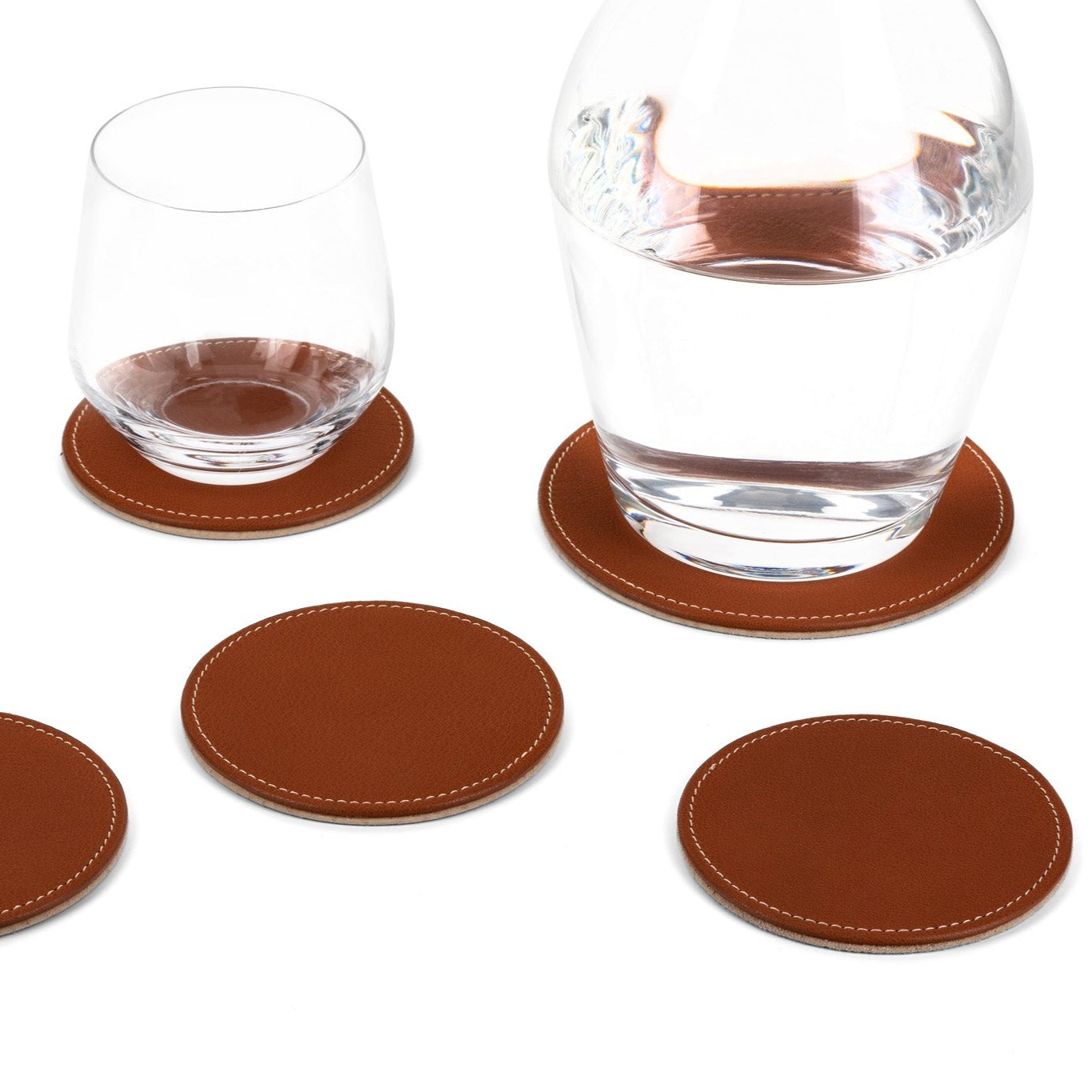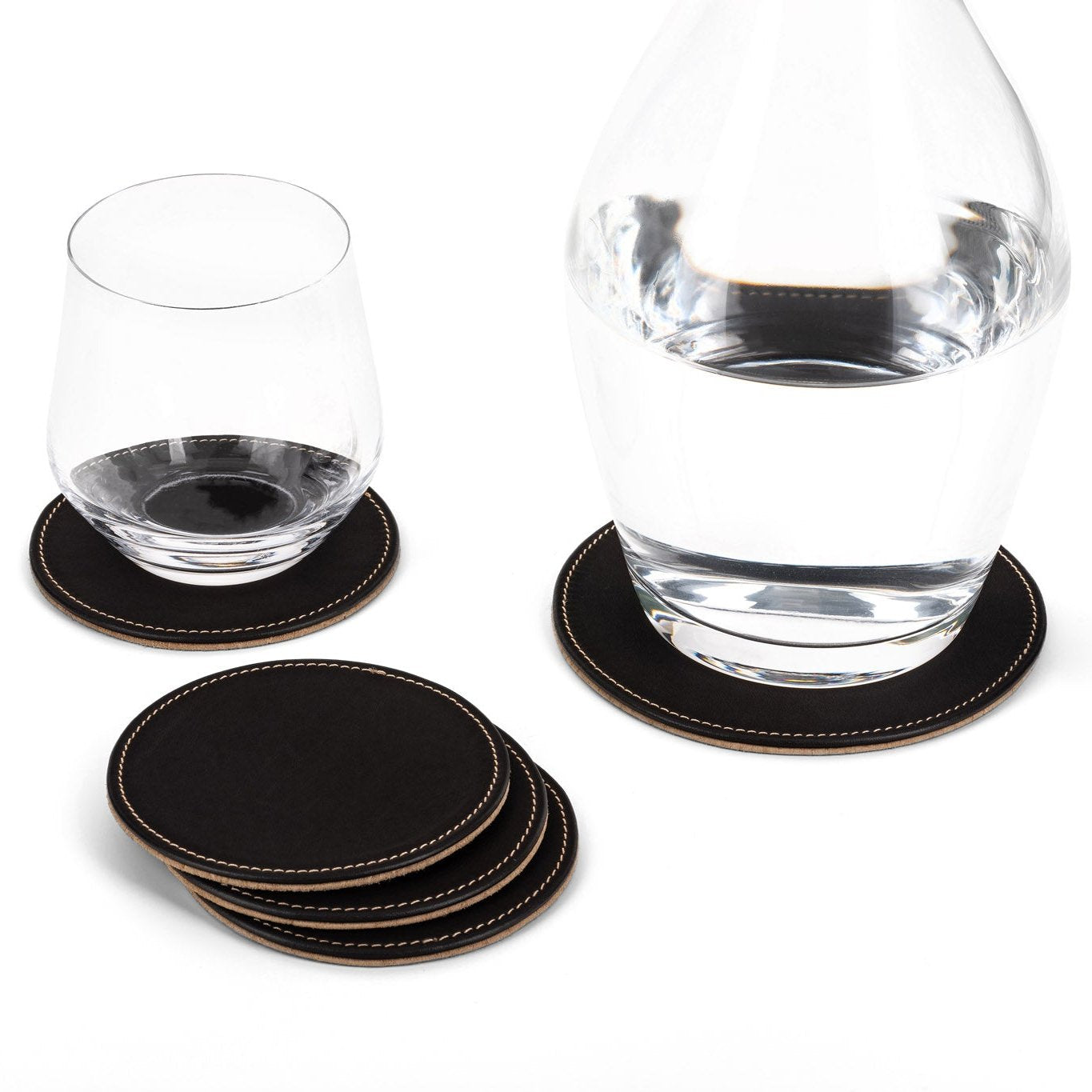 The CG set of coasters is practical both at home and in the office. It lets you spill some of your drink in style and keeps your table and desk clean. The anti-slip bottom layer complements the leather top layer perfectly.